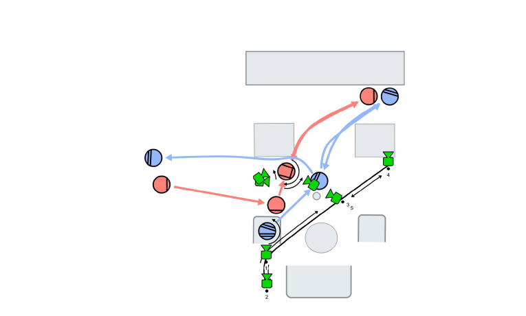 1) Find stops and movement – Arrange character movement based on script description and character feeling